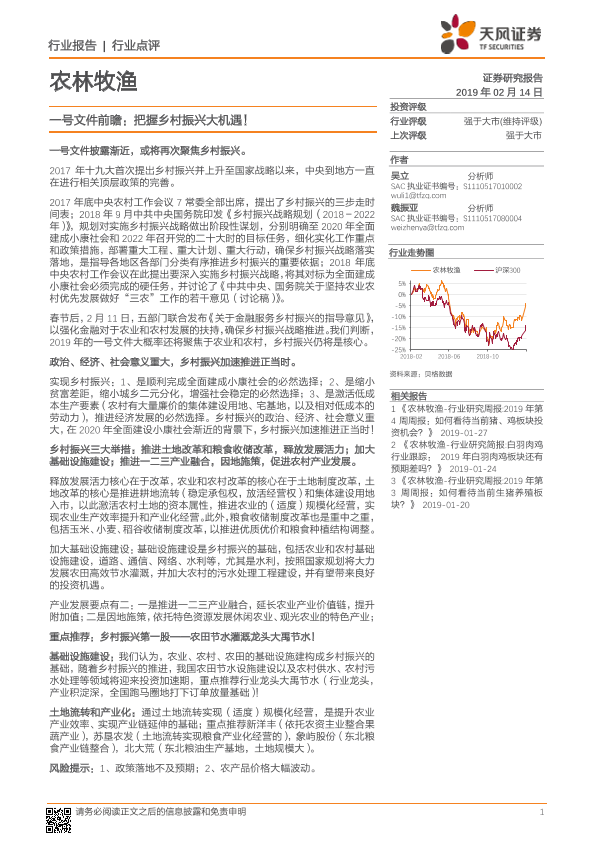 【天风证券】【20190214】农林牧渔行业点评:一号文件前瞻:把握乡村振兴大机遇!-2页