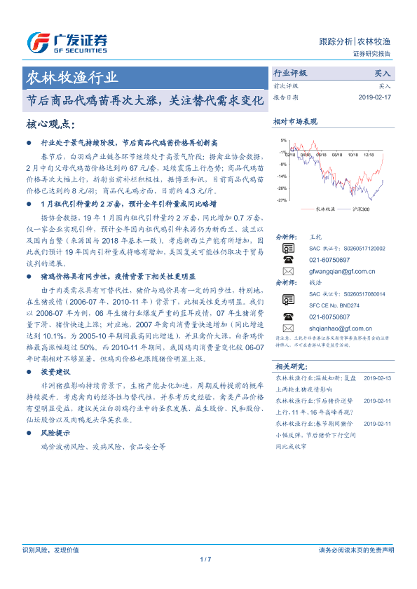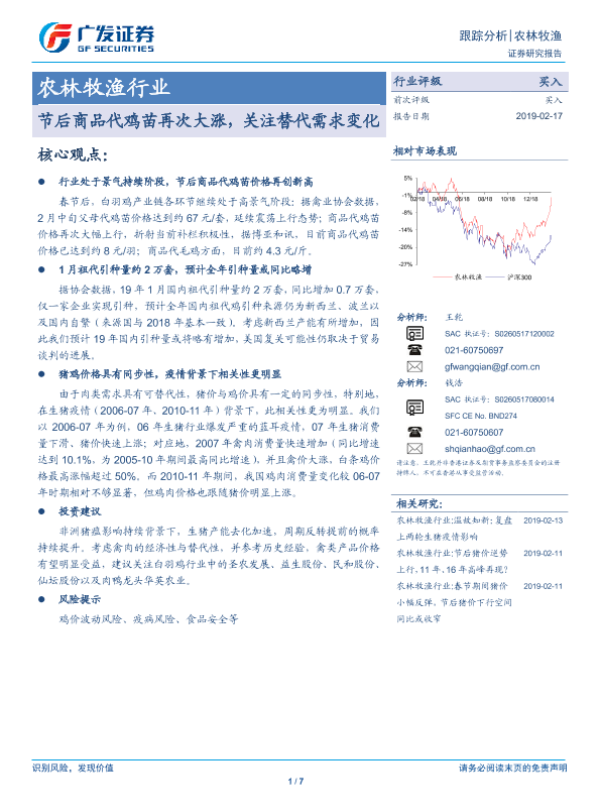 【广发证券】【20190217】节后商品代鸡苗再次大涨,关注替代需求变化-7页