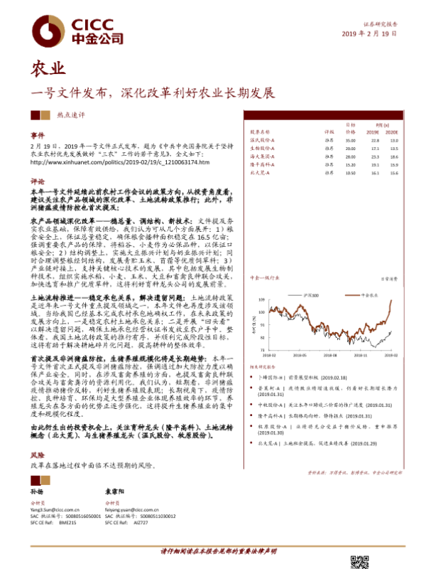 【中金公司】【20190219】农业热点速评:一号文件发布,深化改革利好农业长期发展-4页