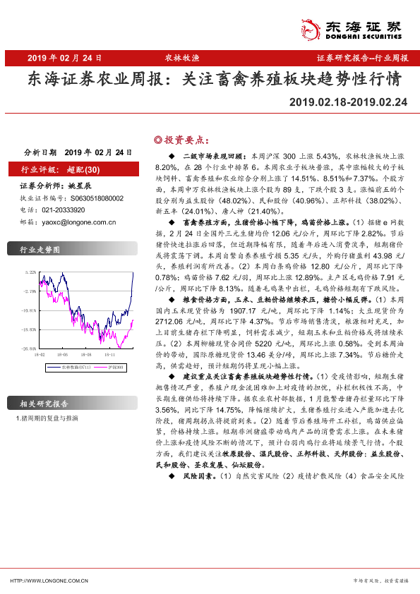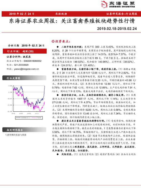 【东海证券】【20190224】20190224-东海证券-农林牧渔周报:关注畜禽养殖板块趋势性行情-8页