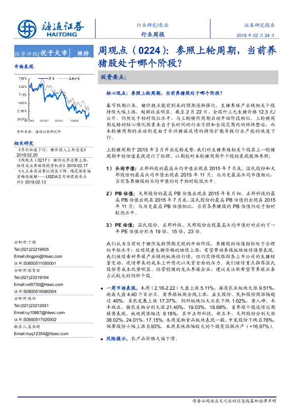 【海通证券】【20190224】20190224-海通证券-农业行业周报周观点:参照上轮周期,当前养猪股处于哪个阶段?-4页