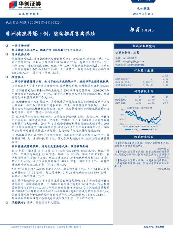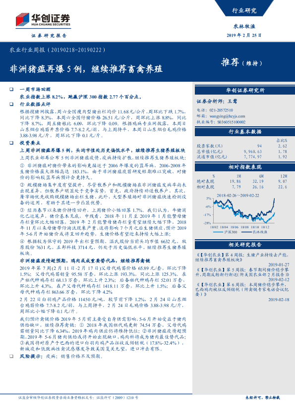 【华创证券】【20190225】20190225-华创证券-农业行业周报:非洲猪瘟再爆5例,继续推荐畜禽养殖-28页