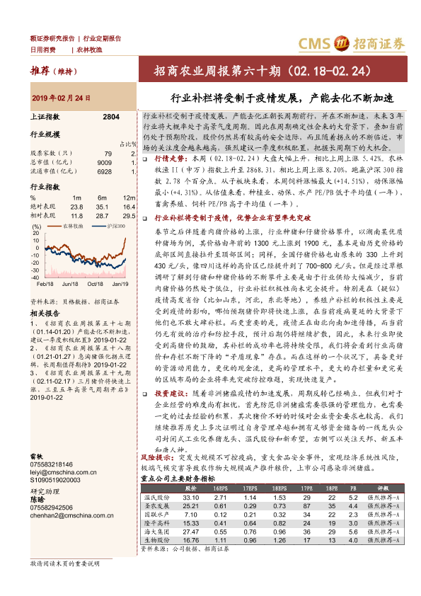 【海通证券】【20190224】农业周报第六十期:行业补栏将受制于疫情发展,产能去化不断加速-25页