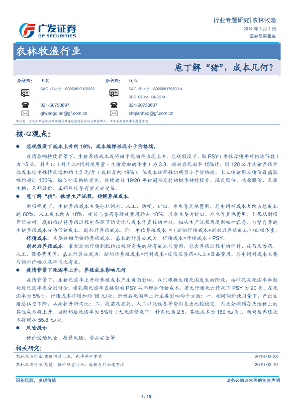 【广发证券】【20190303】20190303-广发证券-农林牧渔行业专题研究:庖丁解“猪”,成本几何?-15页