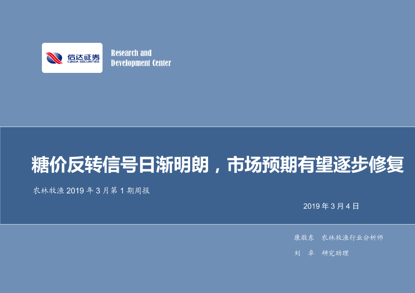 【信达证券】【20190304】农林牧渔2019年3月第1期周报:糖价反转信号日渐明朗,市场预期有望逐步修复-24页