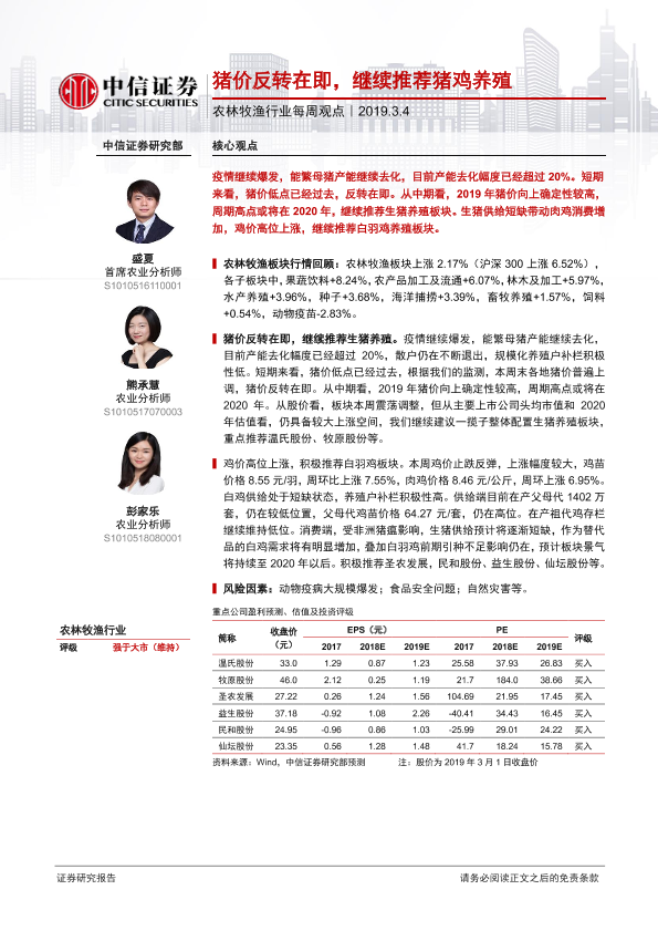 【中信证券】【20190304】20190304-中信证券-农林牧渔行业每周观点:猪价反转在即,继续推荐猪鸡养殖-6页