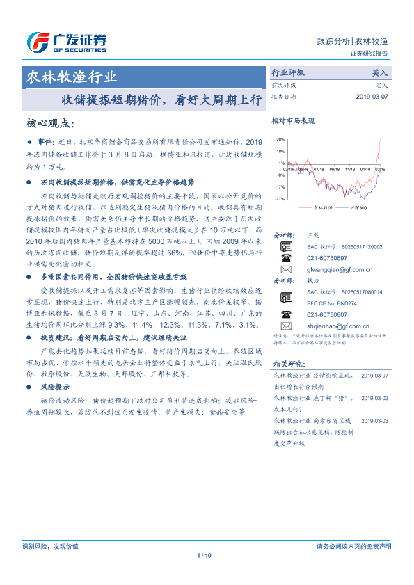 【广发证券】【20190307】农林牧渔行业:收储提振短期猪价,看好大周期上行-10页