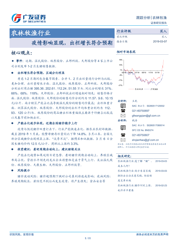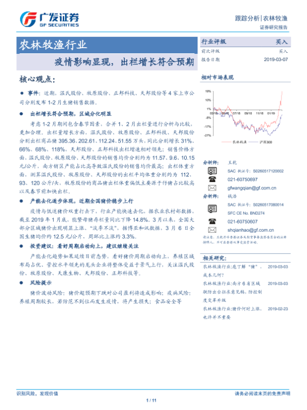 【广发证券】【20190307】农林牧渔行业:疫情影响显现,出栏增长符合预期-11页