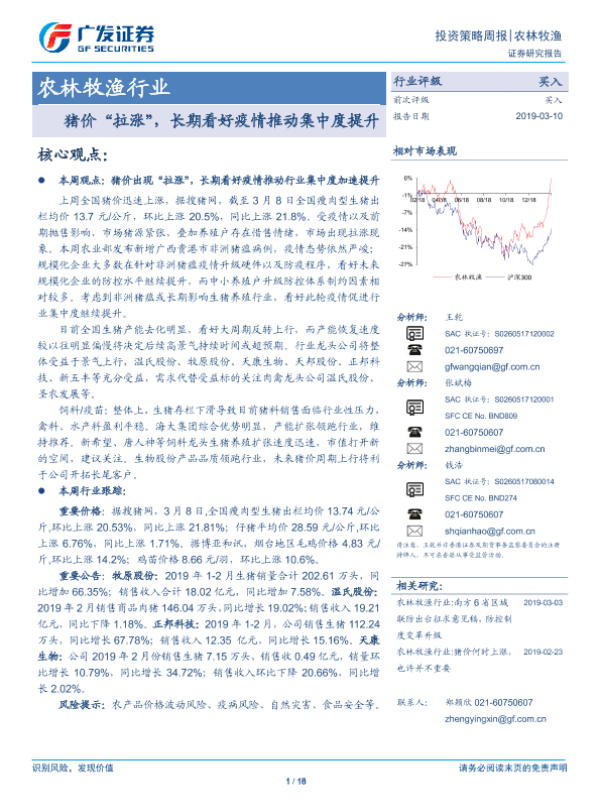 【广发证券】【20190310】农林牧渔行业:猪价“拉涨”,长期看好疫情推动集中度提升-18页