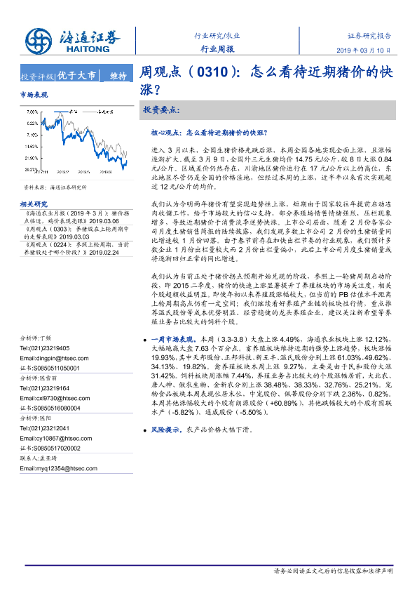 【海通证券】【20190310】20190310-海通证券-农业行业周观点:怎么看待近期猪价的快涨?-4页