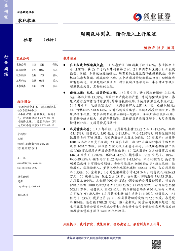 【兴业证券】【20190310】周期反转到来,猪价进入上行通道-16页