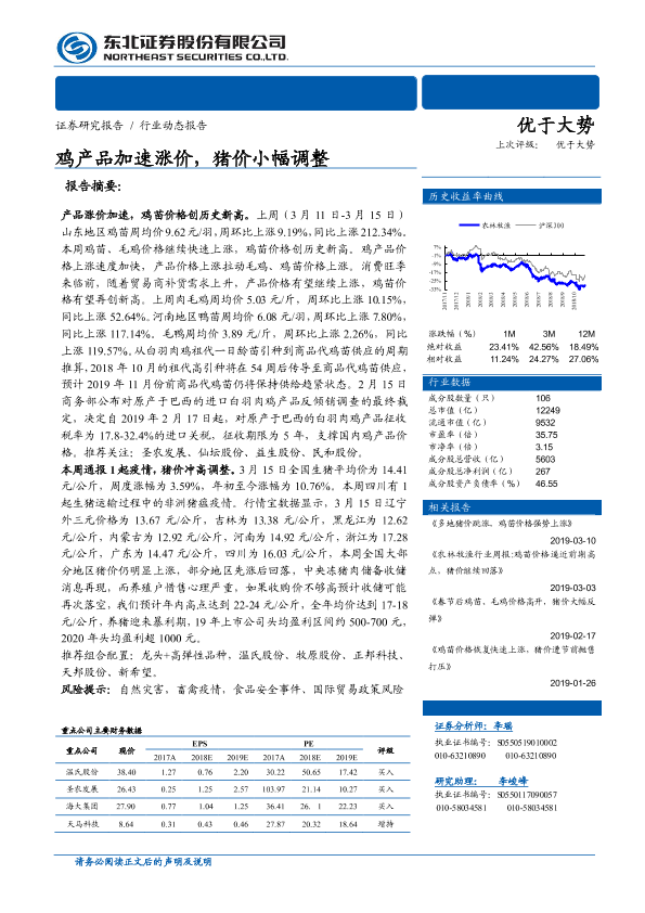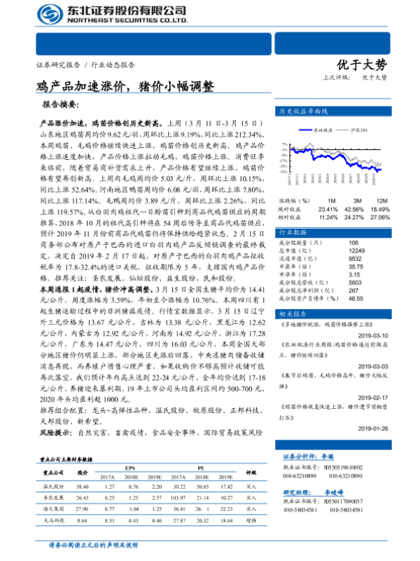 【东北证券】【20190317】20190317-东北证券-农林牧渔行业动态报告:鸡产品加速涨价,猪价小幅调整-10页