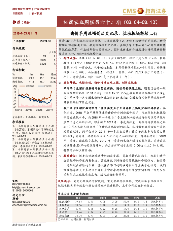 【海通证券】【20190311】招商农业周报第六十二期:猪价单周涨幅创历史记录,拉动板块持续上行-24页