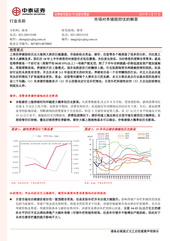 【中泰证券】【20190317】20190317-中泰证券-农林牧渔行业报告简版:市场对养猪股担忧的解答-11页