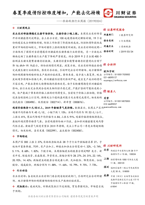 【川财证券】【20190324】农林牧渔行业周报:春夏季疫情防控难度增加,产能去化持续-13页
