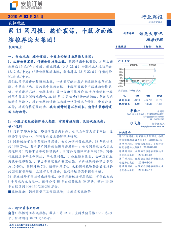 【安信证券】【20190324】农林牧渔第11周周报:猪价震荡,个股方面继续推荐海大集团!-12页