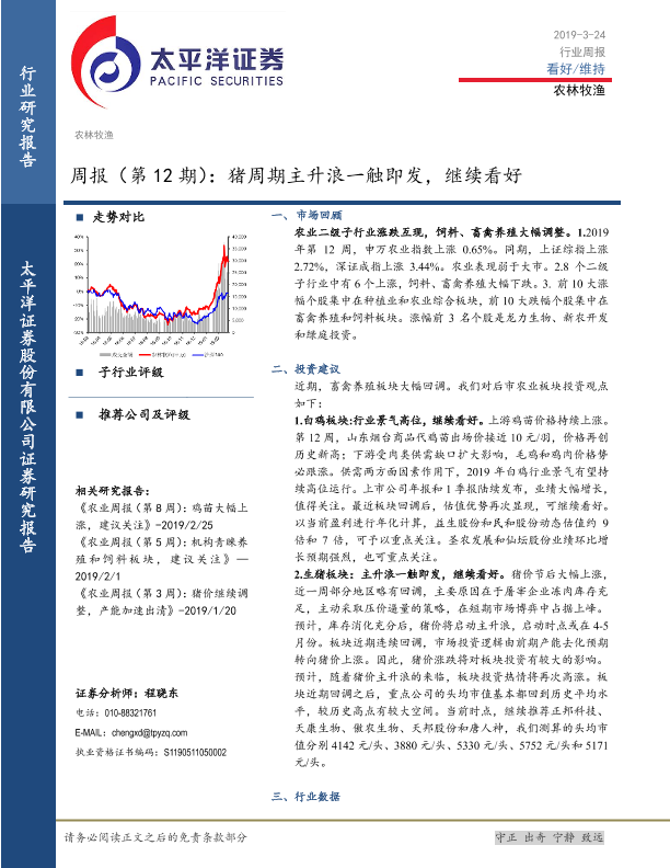 【太平洋证券】【20190324】20190324-太平洋-农林牧渔周报(第12期):猪周期主升浪一触即发,继续看好-16页