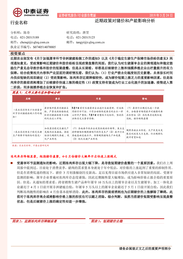 【中泰证券】【20190324】近期政策对猪价和产能影响分析-11页