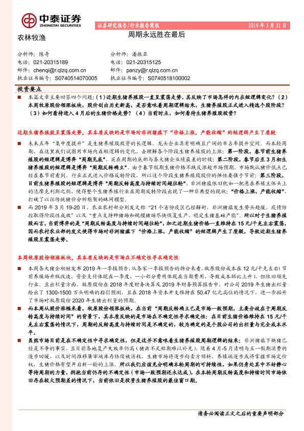 【中泰证券】【20190331】农林牧渔:周期永远胜最后-10页