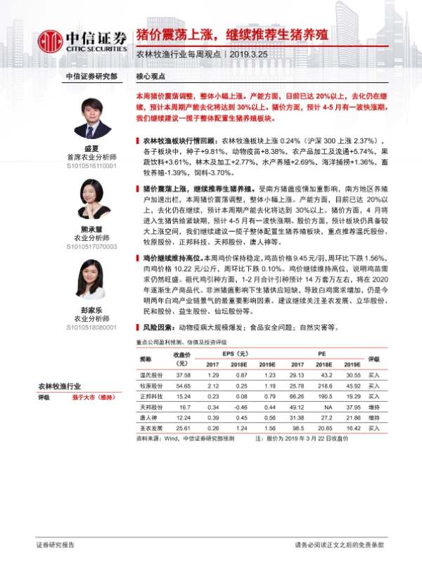 【中信证券】【20190325】20190325-中信证券-农林牧渔行业每周观点:猪价震荡上涨,继续推荐生猪养殖-6页