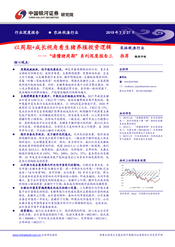 【银河证券】【20190327】20190327-中国银河-“读懂猪周期”系列深度报告三:以周期+成长视角看生猪养殖投资逻辑-20页