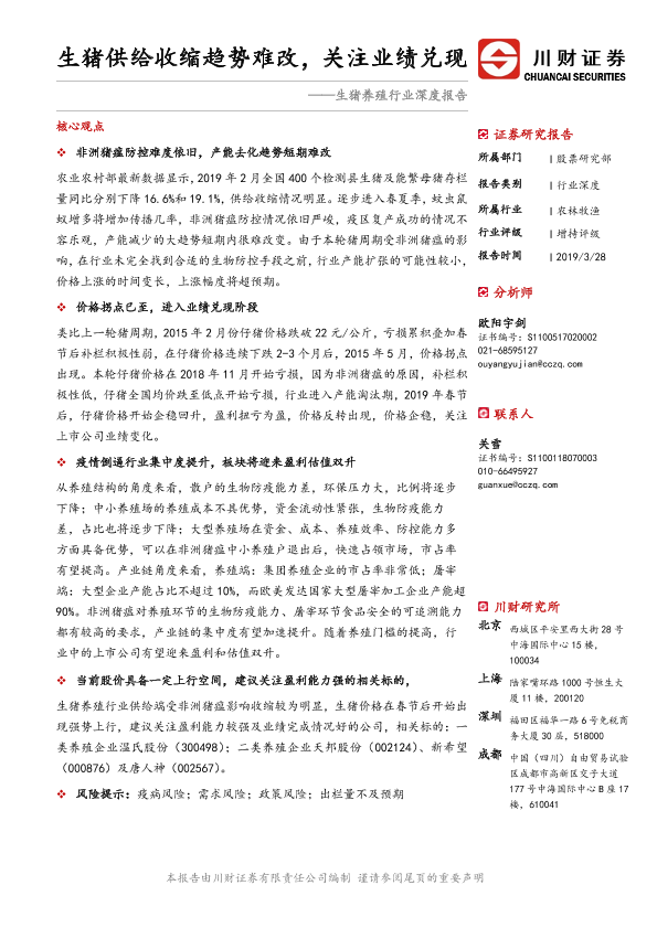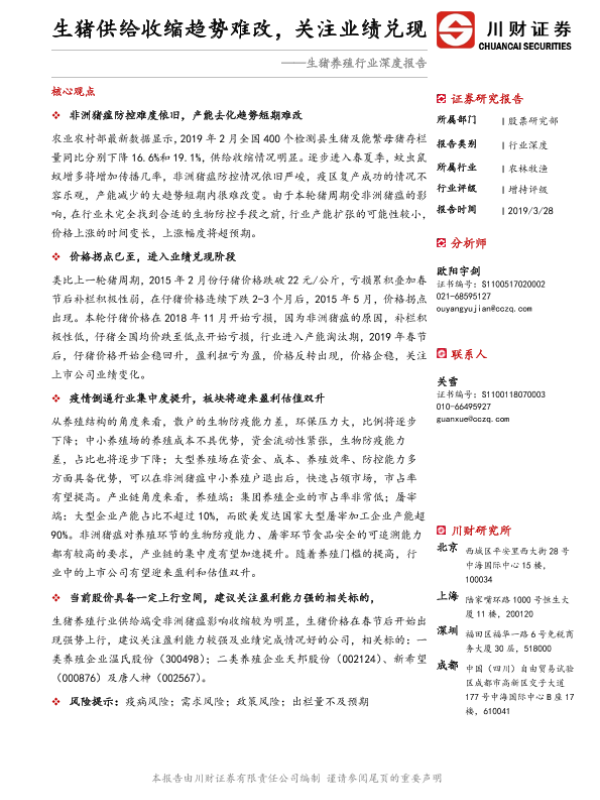 【川财证券】【20190328】生猪供给收缩趋势难改,关注业绩兑现-26页