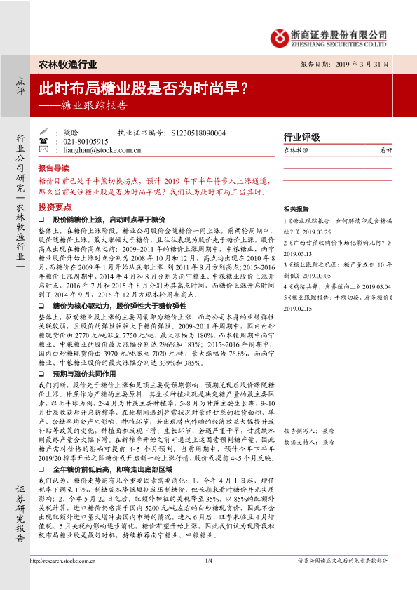 【浙商证券】【20190331】20190331-浙商证券-糖业跟踪报告:此时布局糖业股是否为时尚早?-4页