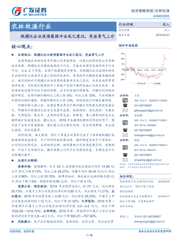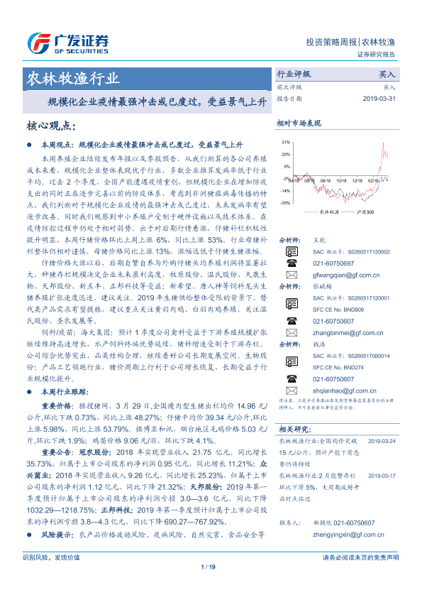 【广发证券】【20190331】农林牧渔行业投资策略周报:规模化企业疫情最强冲击或已度过,受益景气上升-19页