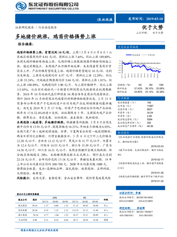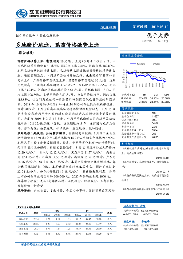 【东北证券】【20190310】多地猪价跳涨,鸡苗价格强势上涨-10页