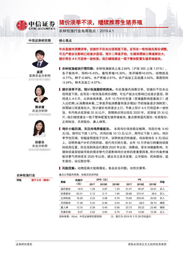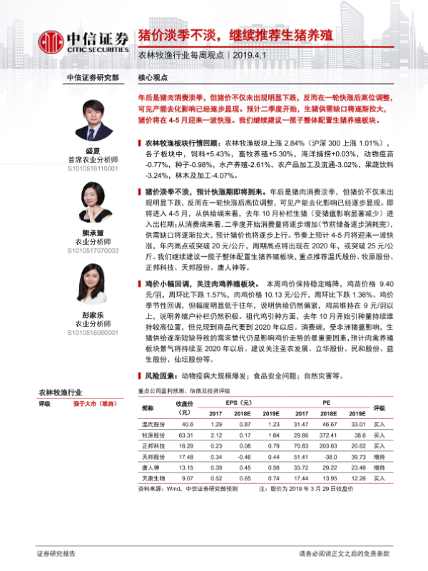【中信证券】【20190401】20190401-中信证券-农林牧渔行业每周观点:猪价淡季不淡,继续推荐生猪养殖-7页