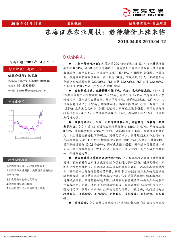 【东海证券】【20190413】东海证券-农业周报:静待猪价上涨来临-9页