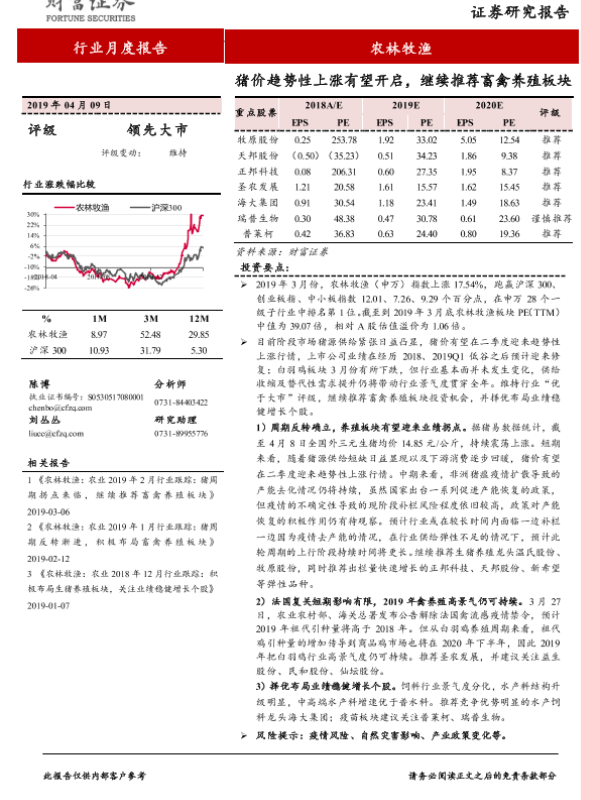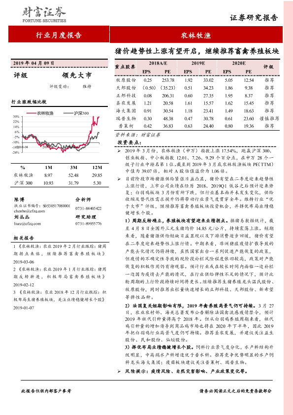 【财信证券】【20190409】20190409-财信证券-农林牧渔行业月度报告:猪价趋势性上涨有望开启,继续推荐畜禽养殖板块-14页