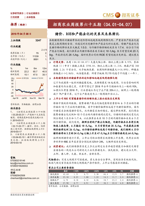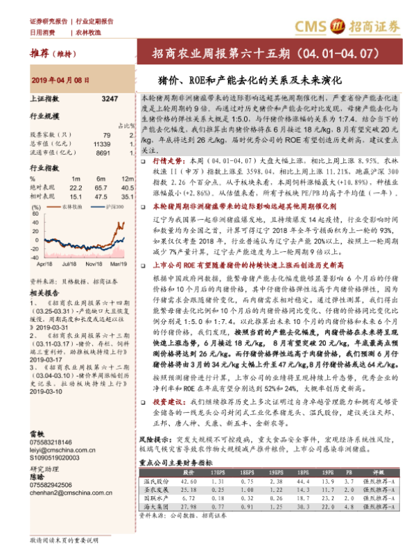 【海通证券】【20190408】招商农业周报第六十五期:猪价、ROE和产能去化的关系及未来演化-24页