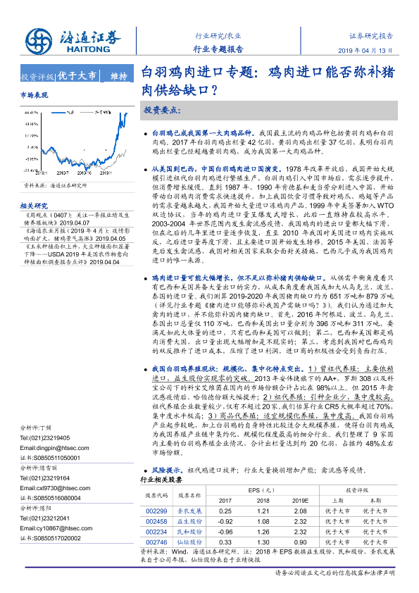 【海通证券】【20190413】白羽鸡肉进口专题:鸡肉进口能否弥补猪肉供给缺口?-20页