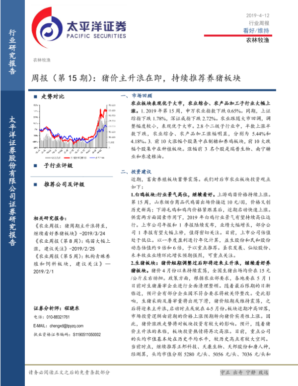 【太平洋证券】【20190412】20190412-太平洋-农林牧渔周报(第15期):猪价主升浪在即,持续推荐养猪板块-17页