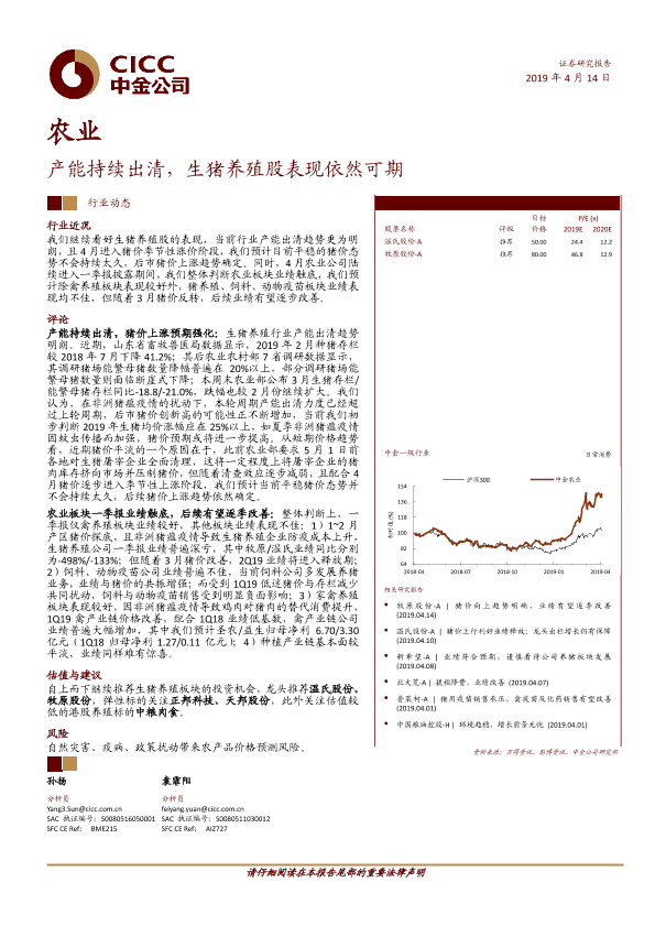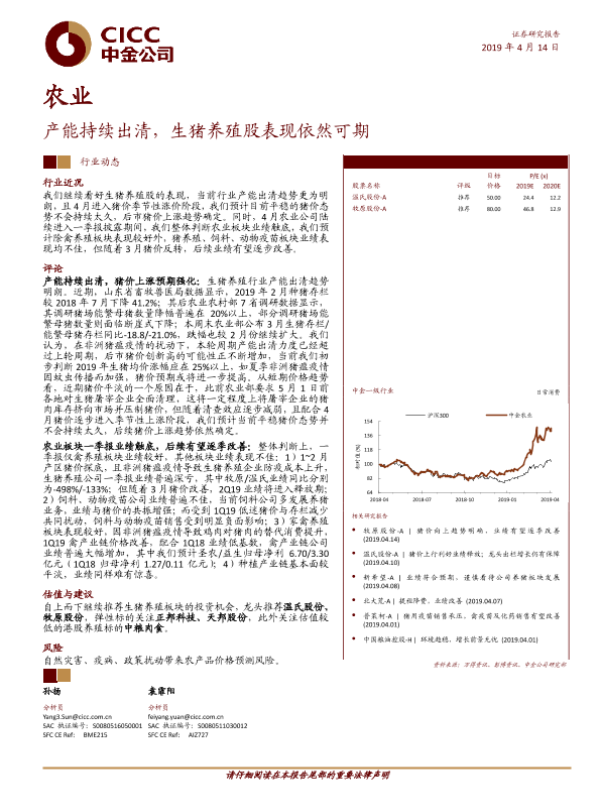 【中金公司】【20190414】20190414-中金公司-农业行业动态:产能持续出清,生猪养殖股表现依然可期-8页