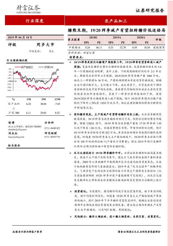 【财信证券】【20190418】糖熊末期,19 20榨季减产有望扭转糖价低迷格局-20页