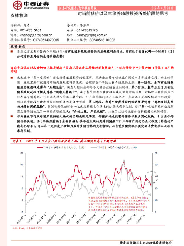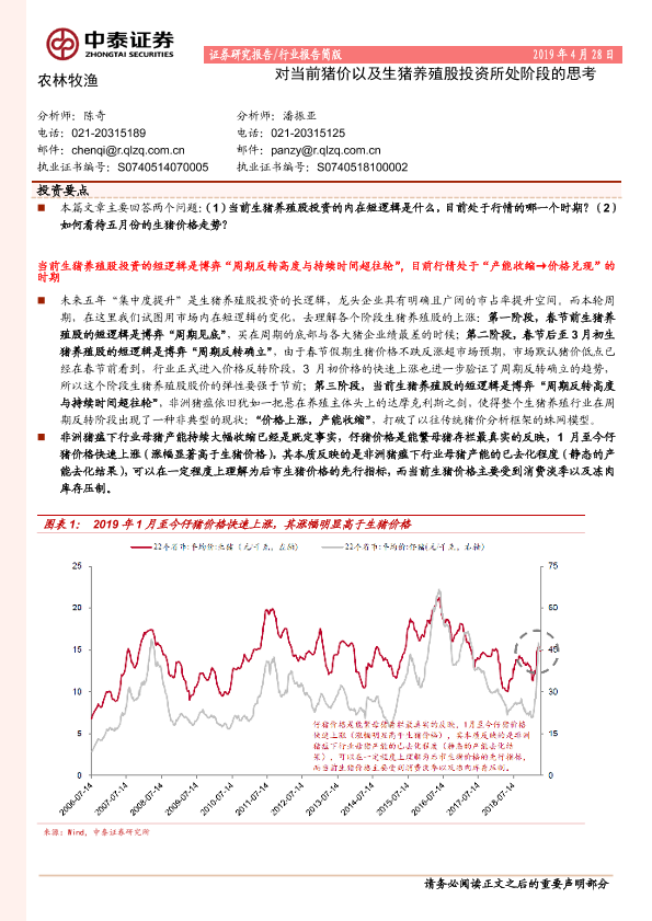 【中泰证券】【20190428】20190428-中泰证券-农林牧渔行业报告简版:对当前猪价以及生猪养殖股投资所处阶段的思考-10页
