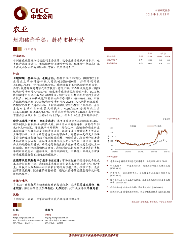 【中金公司】【20190512】农业:短期猪价平稳,静待重拾升势-8页