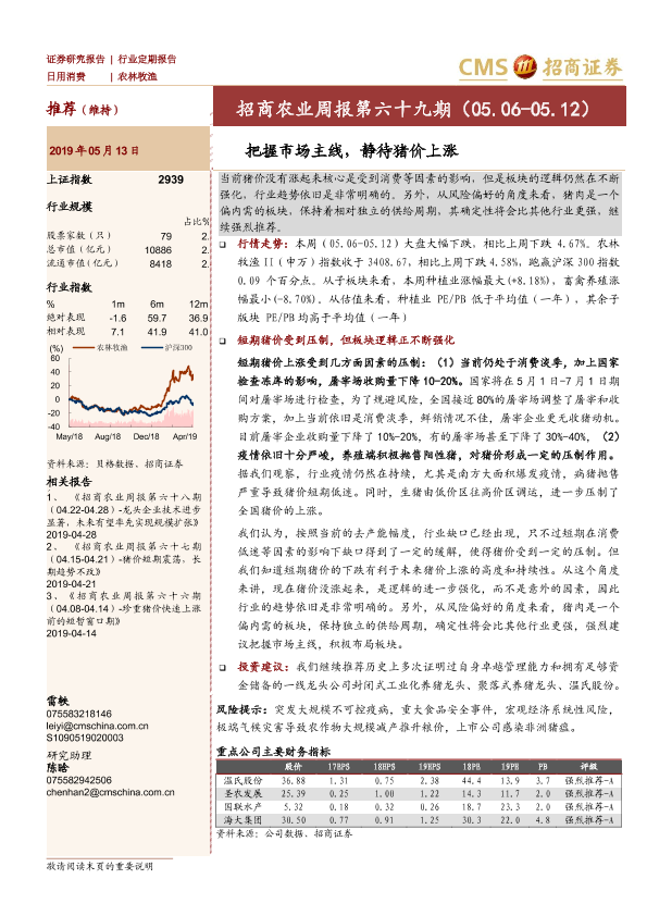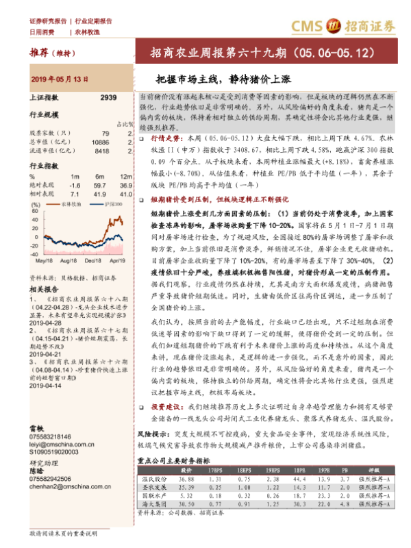 【海通证券】【20190513】招商农业周报第六十九期:把握市场主线,静待猪价上涨-27页