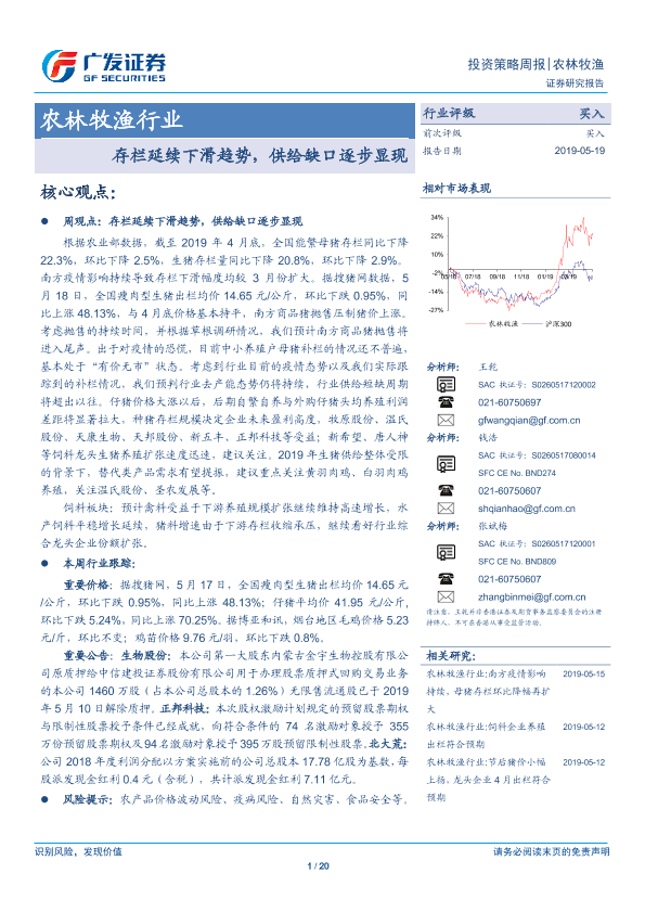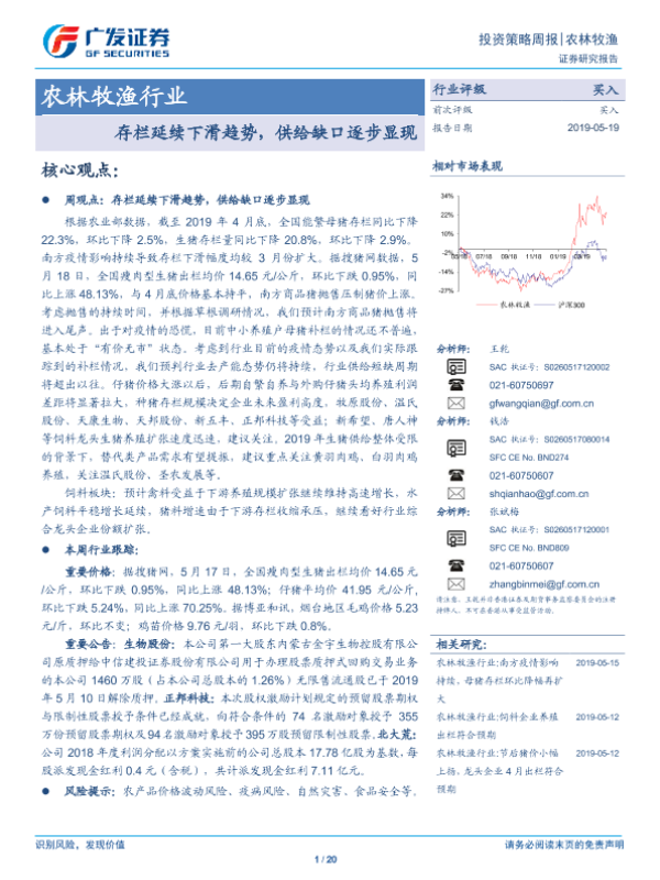 【广发证券】【20190519】农林牧渔行业:存栏延续下滑趋势,供给缺口逐步显现-20页