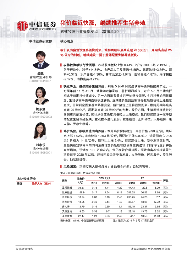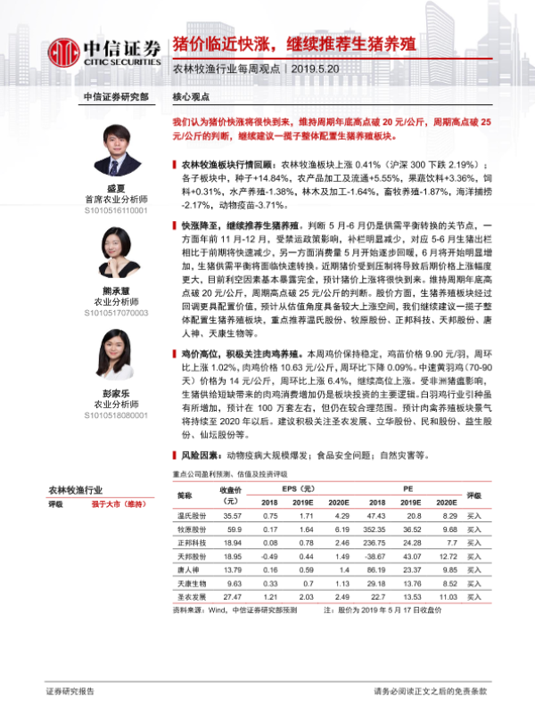 【中信证券】【20190520】农林牧渔行业每周观点:猪价临近快涨,继续推荐生猪养殖-7页