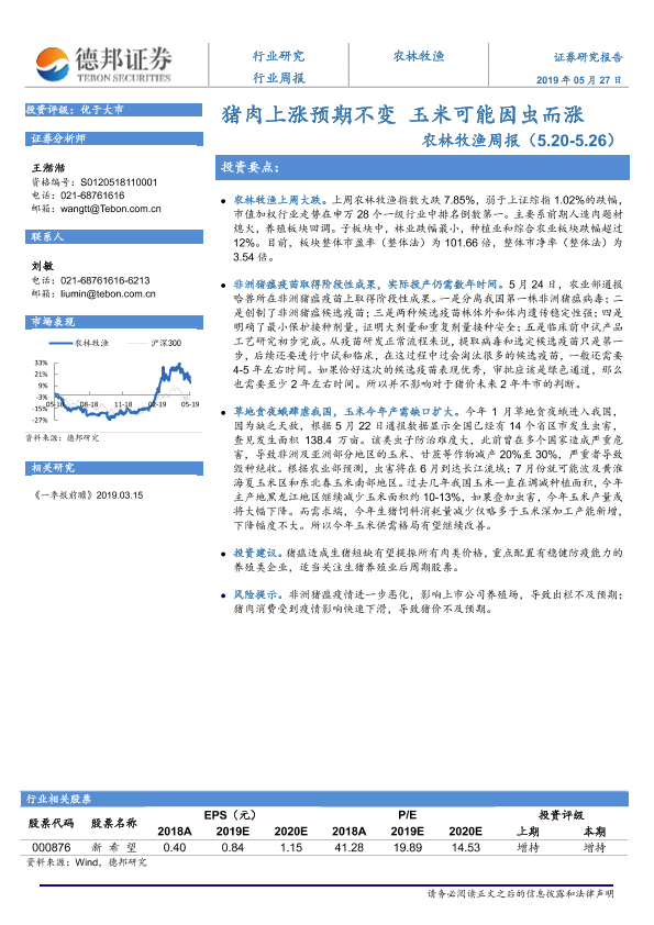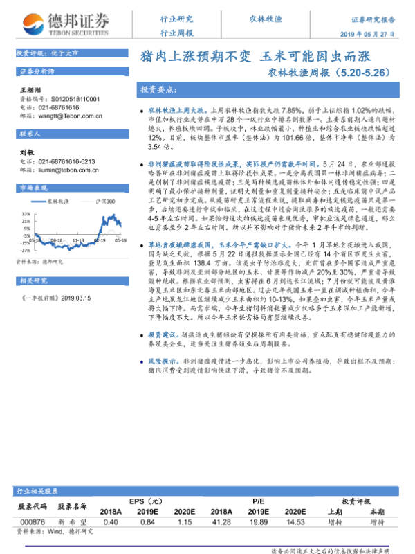 【德邦证券】【20190527】20190527-德邦证券-农林牧渔周报:猪肉上涨预期不变 玉米可能因虫而涨-9页