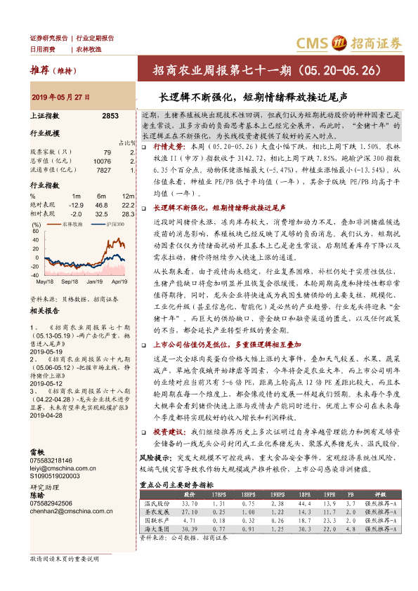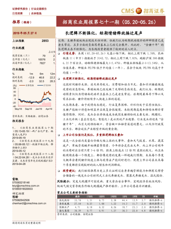 【海通证券】【20190527】招商农业周报第七十一期:长逻辑不断强化,短期情绪释放接近尾声-24页