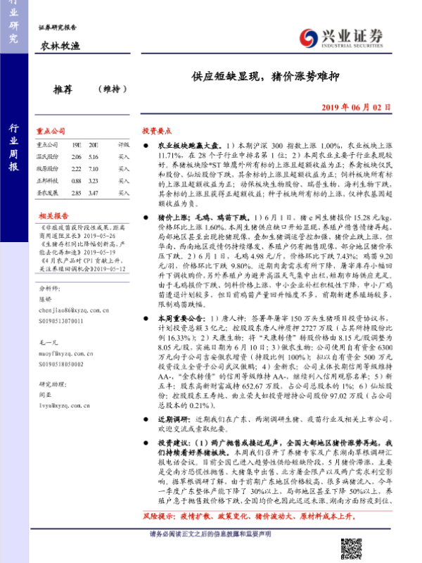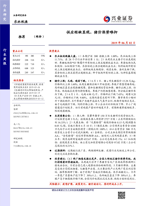 【兴业证券】【20190602】供应短缺显现,猪价涨势难抑-15页
