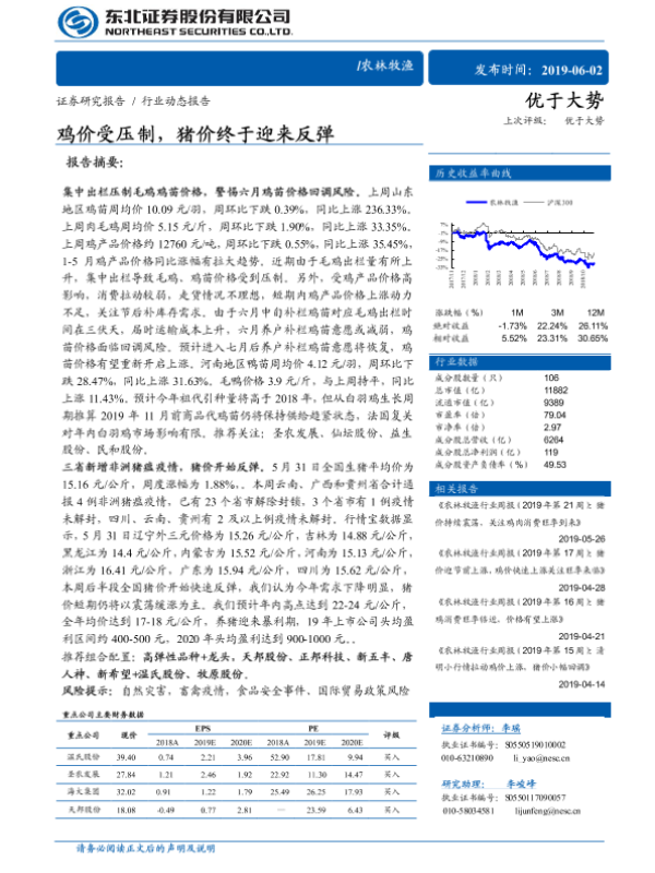 【东北证券】【20190602】农林牧渔:鸡价受压制,猪价终于迎来反弹-11页