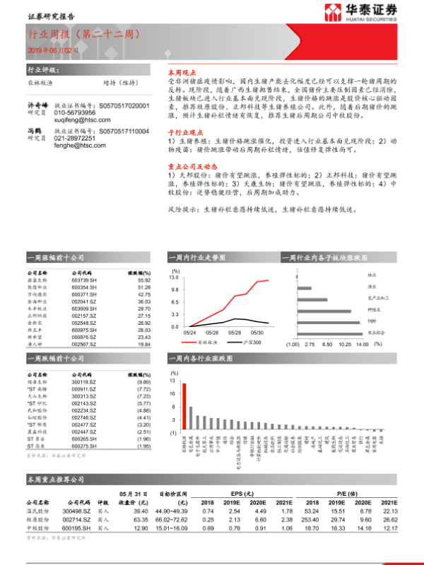 【华泰证券】【20190602】20190602-华泰证券-农林牧渔行业周报(第二十二周)-12页