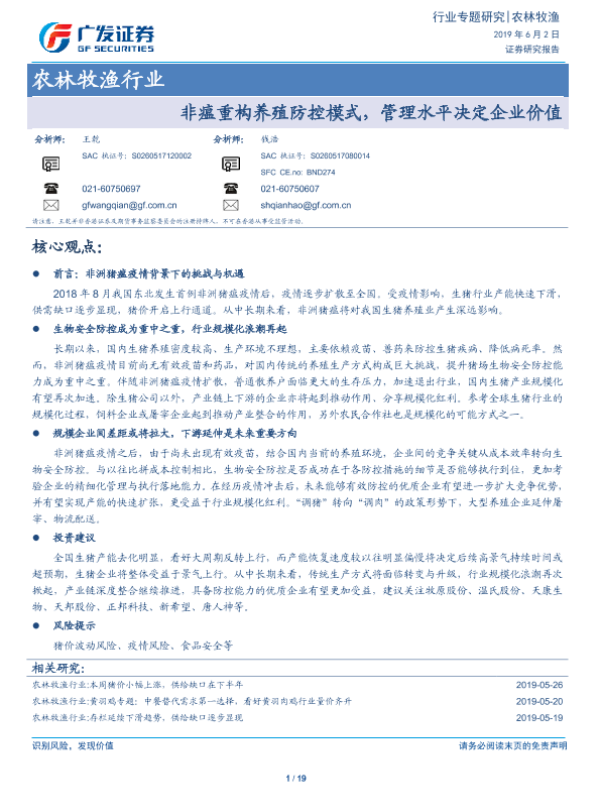 【广发证券】【20190602】非瘟重构养殖防控模式,管理水平决定企业价值-19页