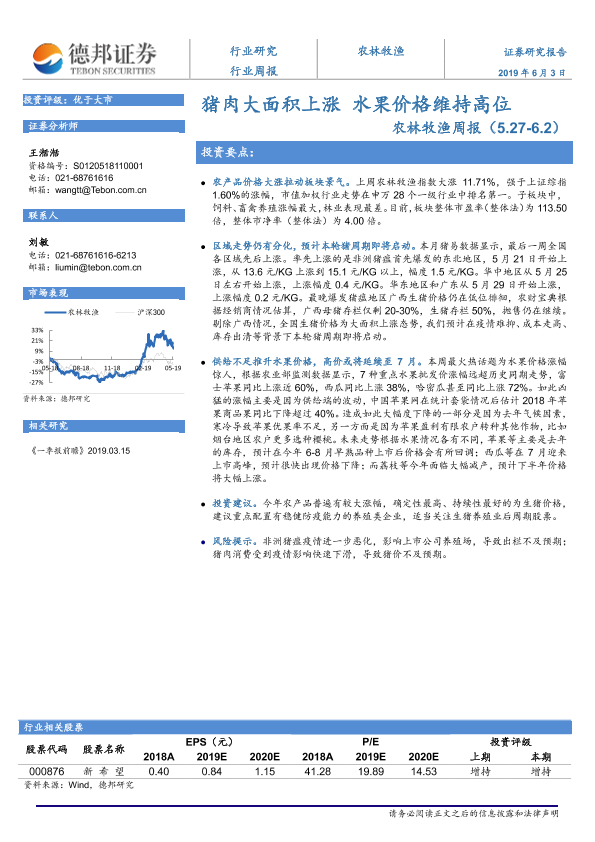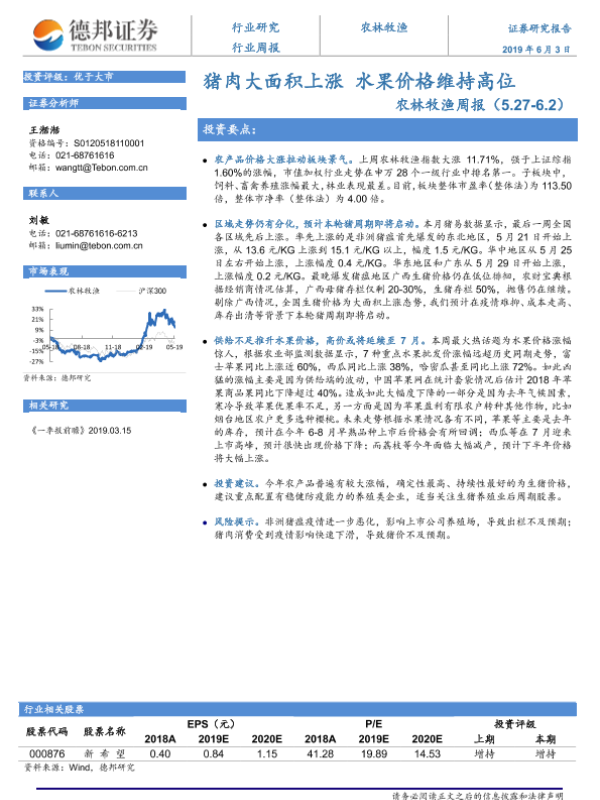 【德邦证券】【20190603】20190603-德邦证券-农林牧渔周报:猪肉大面积上涨 水果价格维持高位-8页