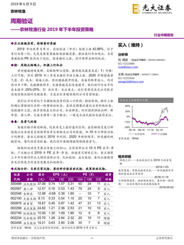 【光大证券】【20190609】农林牧渔行业2019年下半年投资策略:周期验证-26页